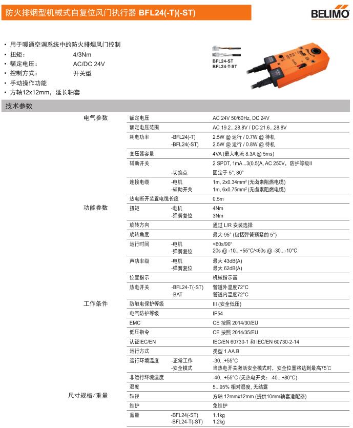 • BFL24防火排煙型機械式自復位風門執行器